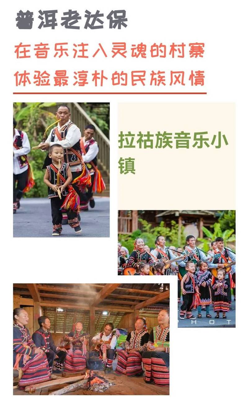 之后驱车前往拉祜老寨【老达保村】拉祜族本意为“猎虎的民族”在拉祜人家进行家访,看传统的农具,拉祜乐器的诞生的地方,在吊脚楼了解拉祜族的前世今生。“会说话就会唱歌,会走路就会跳舞”是拉祜人最骄傲的地方,他们曾经代表云南走上《我要上春晚》。入住后稍事休息集体晚餐。