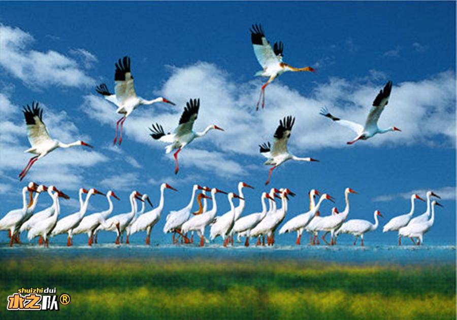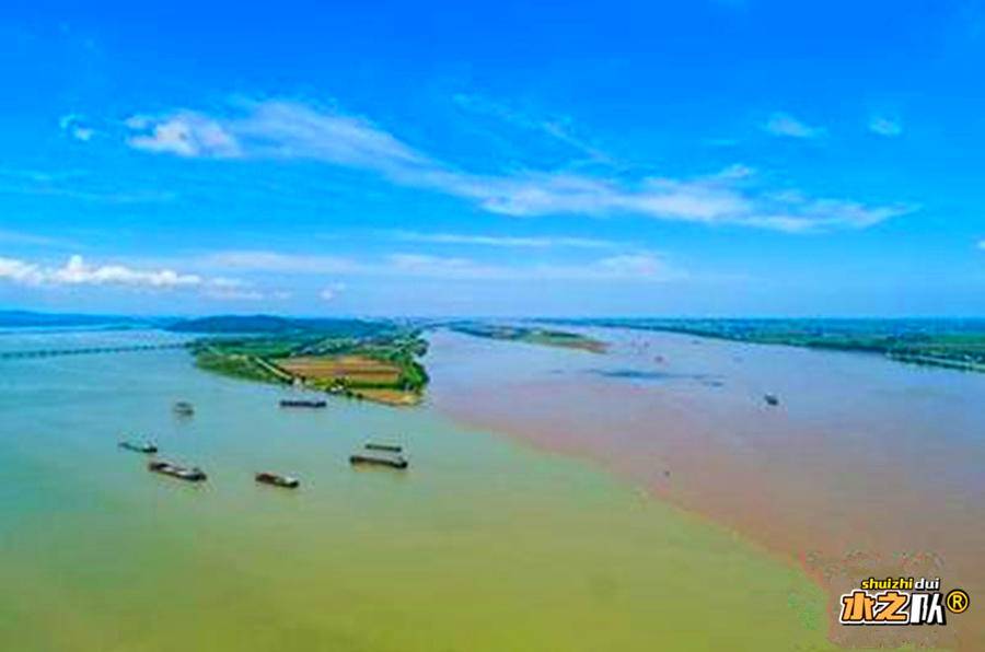 ●鄱阳湖(江湖两色)——长江与鄱阳湖在此交汇融合。左侧长江水呈黄褐色,右侧鄱阳湖水显清绿色。两水交汇,清浊分明,堪称奇观。